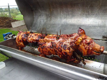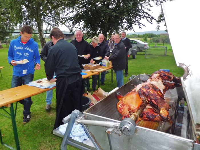 kamen zum Spanferkel-Essen auf dem Gelände