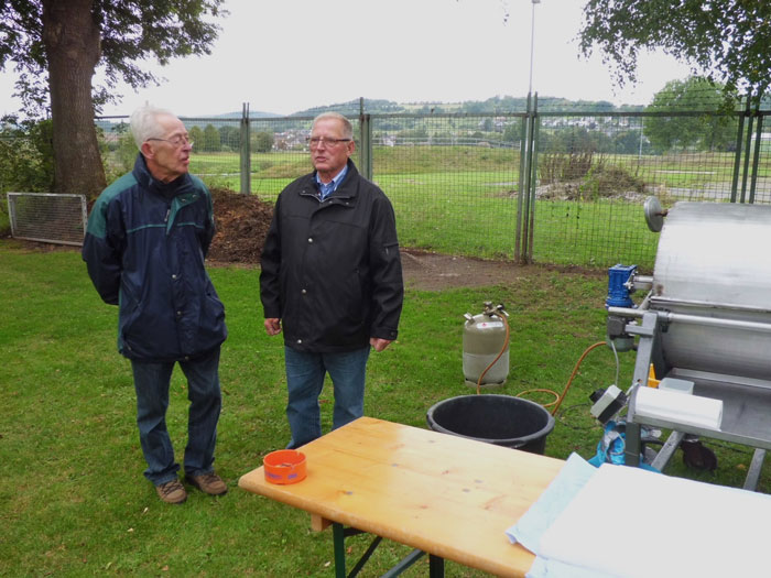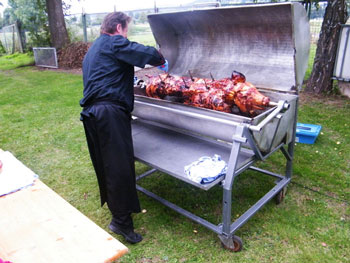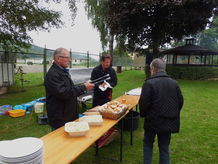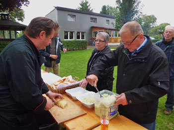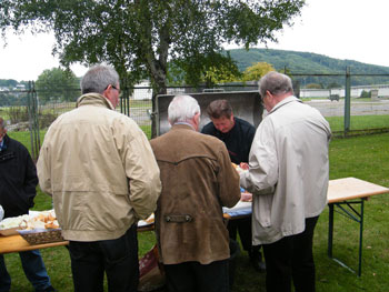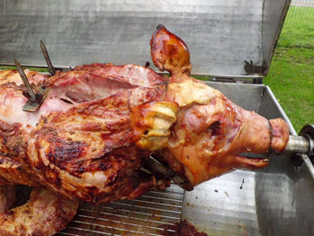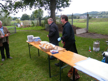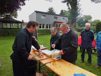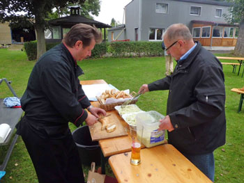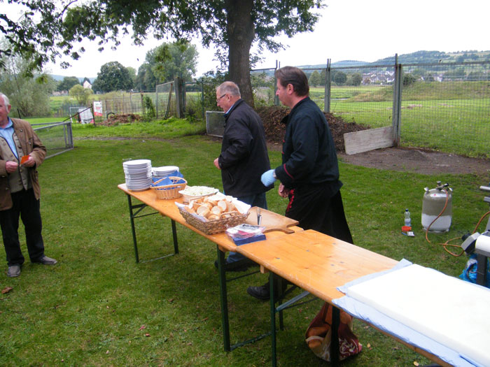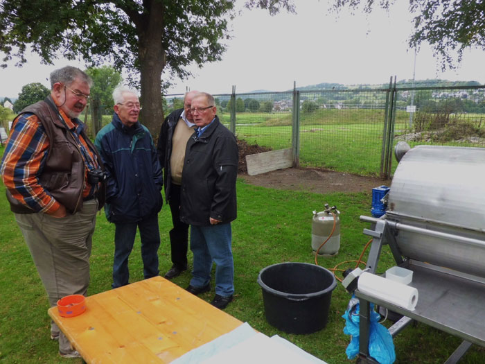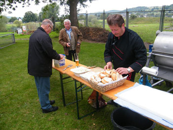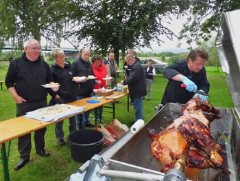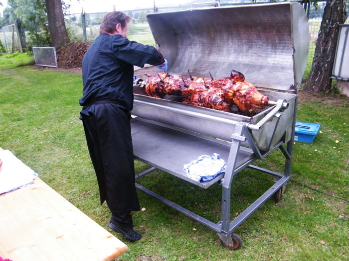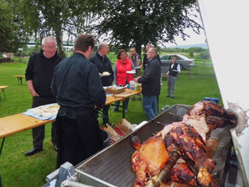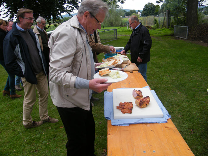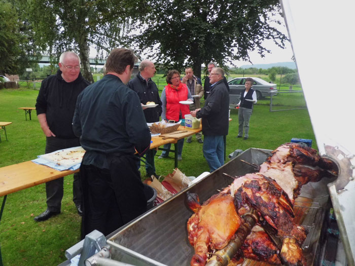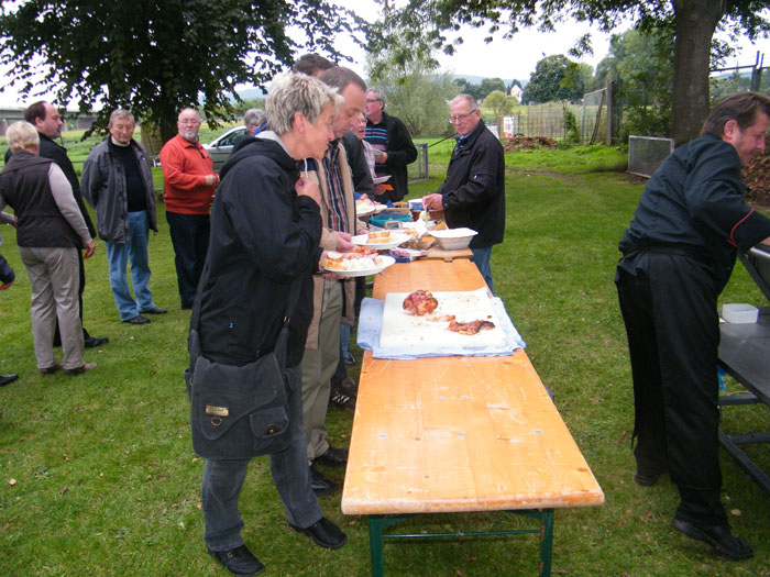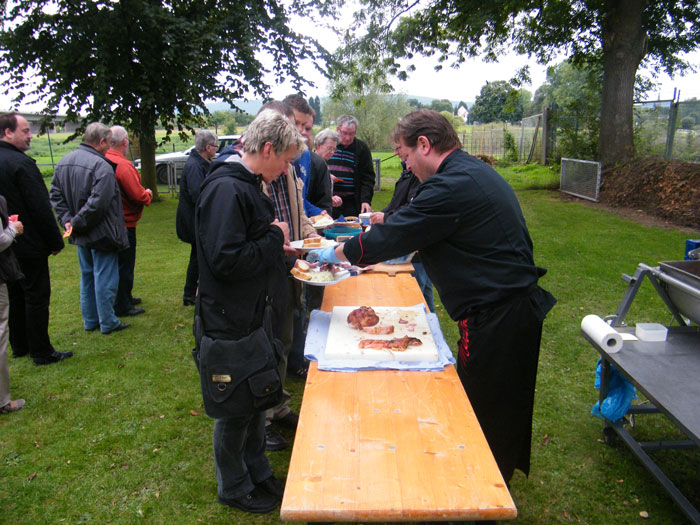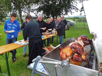 kamen zum Spanferkel-Essen auf dem Gelände