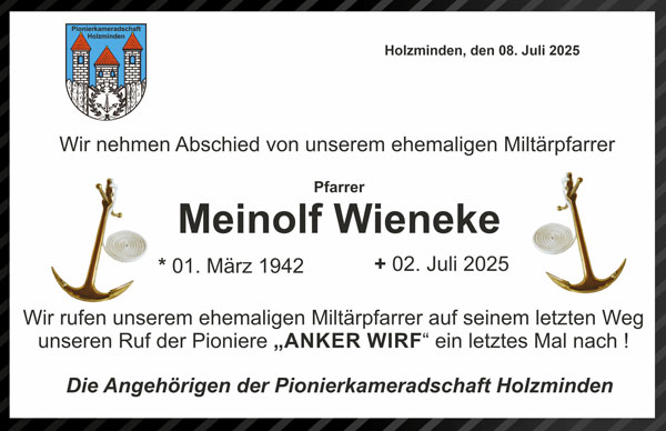 allen Kameraden, die im Januar 2026 ihren Geburtstag feiern. Wir grüßen mit